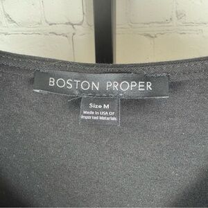 Boston Proper dress size medium. Black, form fitted dress. V-neck. Good used condition, except for one small faded spot on bottom front (see pics). Smoke free home.