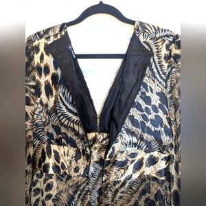 Boston Proper Vintage Silk Sheer Animal Print Beaded Waist Dress Size Medium