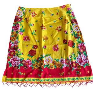 Boston Proper Vintage Y2K Yellow Red Tropical Boho Beaded Mini Skirt Set SZ 2