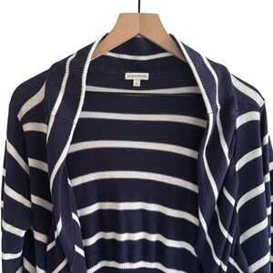 Boston Proper Waterfall Cardigan Sweater Stripes Casual Nautical Lagenlook Small