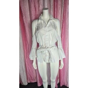 Boston Proper White Crisp Cold Shoulder Flare Sleeve Cotton Blouse Size 12