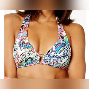 Boston Proper White Lace Fitted Spring Summer Vacation Camisole, M. This elegant camisole from Boston Proper features a delicate white lace upper section with a scalloped edge and intricate floral patterns, seamlessly transitioning into a smooth, fitted purple lower section. The V-shaped neckline adds a touch of sophistication, making it a versatile top for various occasions. In excellent pre-loved condition.