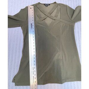 Boston Proper Womens Medium 3/4 Sleeves Tunic Top Criss-Cross Neck Cut-Out Green