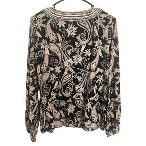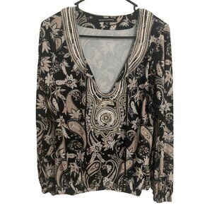 Boston Proper Womens Beaded Paisley Black & Tan Long Sleeve Top Size S Stretch A