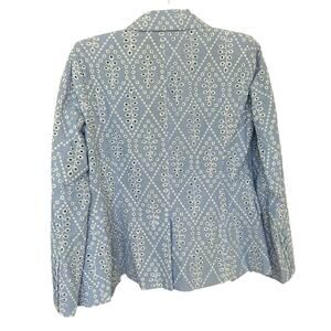 Boston Proper Women's Blue + White Eyelet Blazer Jacket Size 6