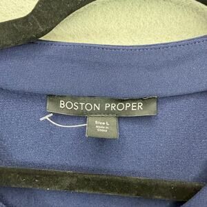 High-quality outerwear piece from Boston Proper. This women’s size L Regular jacket features a vibrant blue color with striking gold-tone hardware on the zipper and pockets. Full zip front, long sleeves, and designed for everyday casual wear or dressed-up layering. Pre-owned condition with normal signs of wear—light surface creasing or minor fabric softening may be present. Please review all detailed pictures carefully to assess any subtle imperfections.