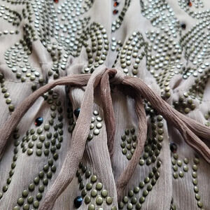 Boston Proper Women's Kaftan Chiffon Blouse Size MP Brown Ombre V-neck Studded Pullover Drawstring Cinched Waistband