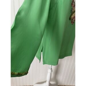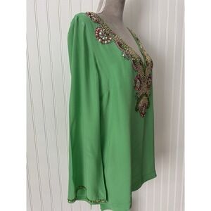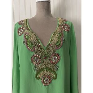 Boston Proper Women's Lightweight Beaded Tunic Top Blouse Green Pink Size Medium