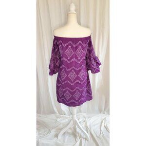 Boston Proper Womens Off Shoulder Dress Size Sm Purple Metallic Lace Bell Sleeve
