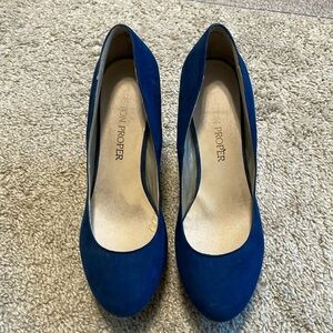 Boston Proper Women’s Pammy Wedge Heels Size 8 Blue Platform Suede Preppy Party