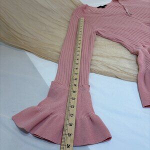 Boston Proper Womens Pink Ribbed/Ruffled Long Sleeve Zip Front Cardigan Size L
