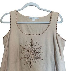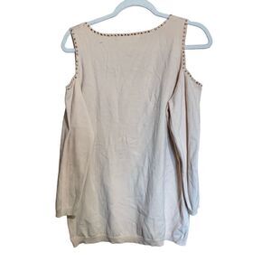 Boston Proper Womens Size Large Beige Embellished Cold Shoulder Sweater Top