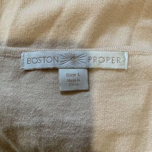 Elevate your wardrobe with this stunning Boston Proper sweater top. Featuring cold shoulder design, this pre-owned sweater top has been embellished to perfection and is perfect for any fashion-savvy woman. The beige color adds a touch of class to the top, making it an ideal choice for various occasions.