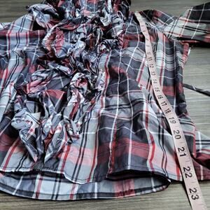 Boston Proper Womens Taffeta Tartan Ruffle Full Zip Blouse 12 Plaid Multi Corset