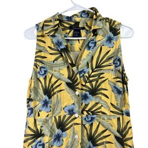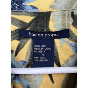Boston Proper Women's Yellow Floral Button Up Silk Shirt Dress Size 8