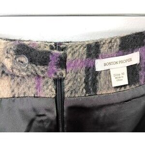 Boston Proper Wool Blend Skirt Size 10 Pencil Back Zip Black White Plaid Lined