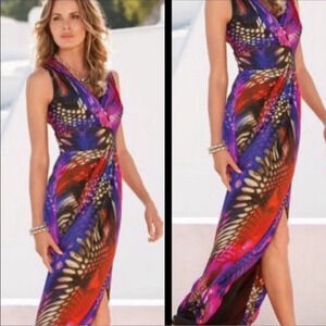 Boston Proper Wrap Front Python Print Maxi Dress Pink Multi 2 Bold Statement NWT