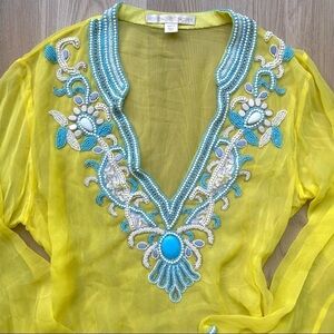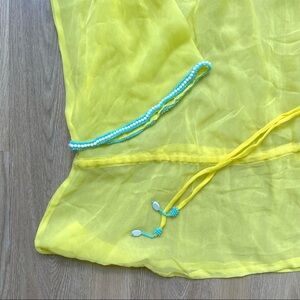 Boston Proper Yellow & Aqua Sheer Beaded Bathing Suit Coverup Dress