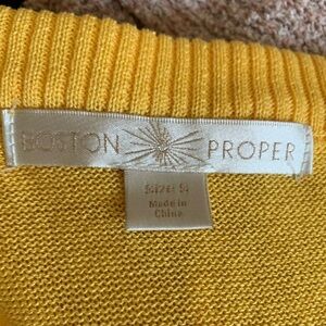 Boston Proper brand yellow ruffle off the shoulder blouse. Excellent pre-owned condition **with only flaw being stretched fabric/ teeny tiny holes along ruffle hems (may be part of style, see last photo)**