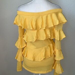 Boston Proper Yellow Ruffle Tiered Off the Shoulder Blouse Size Small