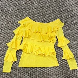 Chic yellow blouse with layered ruffles. Adds flair to any outfit. Ideal for casual or dressy occasions.
