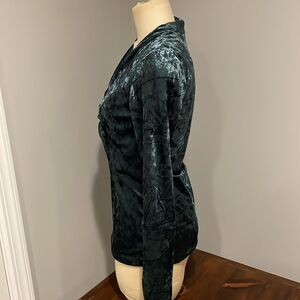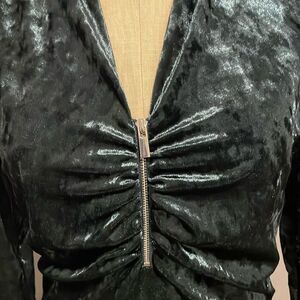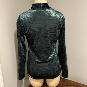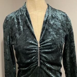 Excellent condition, Boston Proper zipper, long sleeve top. Rich green velvety fabric with a bit of a shine. See pictures for length and armpit to armpit measurements. Size XS