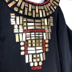 Boston Proper black gold red beaded sleeveless sheath dress size 4