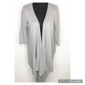 Boston Proper gray linen blend open front waterfall cardigan size Small
