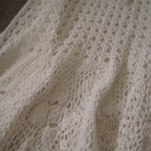 gorgeous white fully lined, crochet maxi length featuring a drawstring stretch waist with a beautiful scalloped edge hemline..perfect with sandals on the beach or western booties on the dance floor..