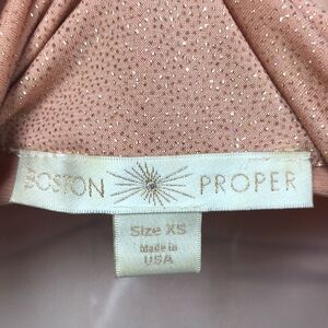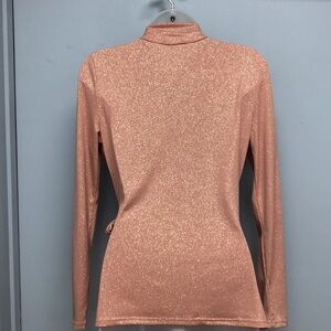 * REDUCED, FINAL PRICE* Blush/nude color with all over gold shimmer. Cross cross front with side tie and keyhole mock neck. Gently worn and is really condition.