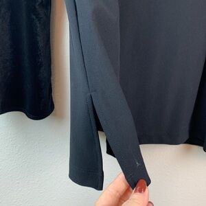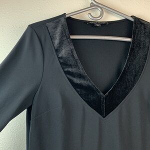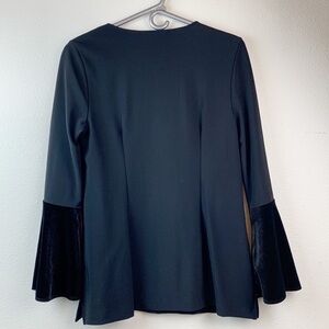 Boston Proper tailored V neck velvet & knit flare sleeve smoothing tunic top EUC