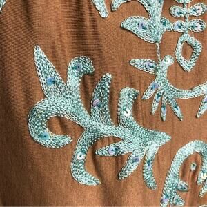 Boston Proper tan brown aqua blue embroidered sequin tunic top size Small