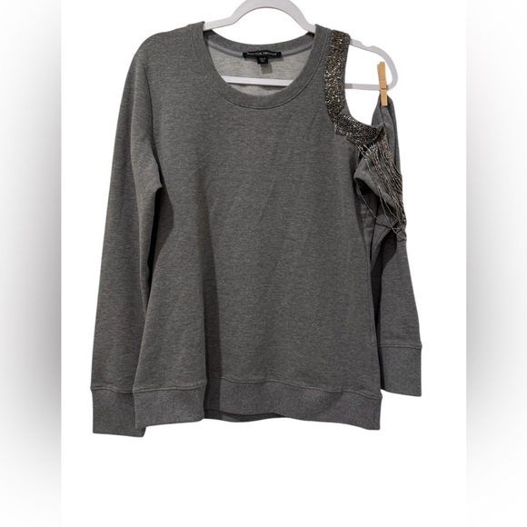Boston Proper women’s Medium long sleeve cold shoulder beaded gray sweater