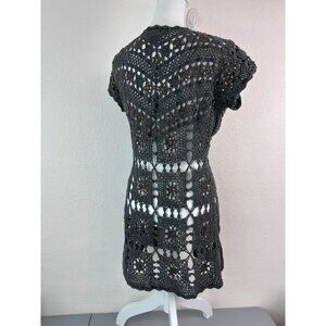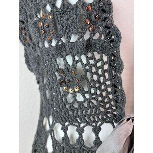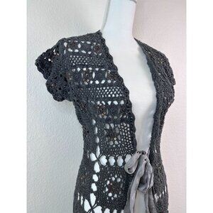 Boston Proper women's medium grey crochet short sleeve Y2K 90's cardigan vest