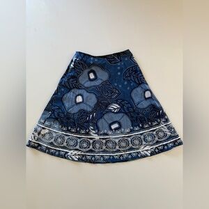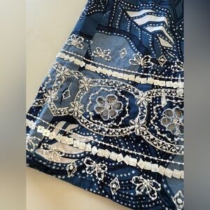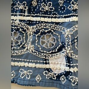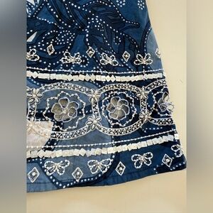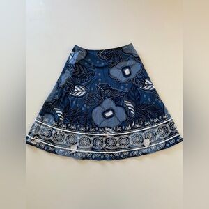Boston Proper-Blue & White-A Line-Beaded-Embellished-Skirt-Cotton-Women’s- 4