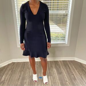 Boston Proper Knee Length Fluted Flare Fishtail Long sleeved V Neck Dress LBD