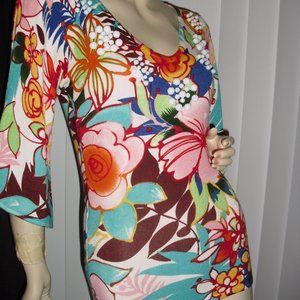 Boston Proper,aqua,seafoam gr,white chalk beads,stretchy,split 3/4 slv,Brand New