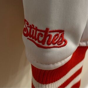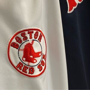 Boston Red Sox Full Zip MLB Jacket By Stitches in excellent pre-owned condition. Size XL. Colors are blue, red and white. Approximate measurements (zipped): 26” Chest, 31” Long
