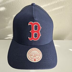 Boston Red Sox Mitchell & Ness Navy Blue Pro Pinch Fit Mesh Patch Snapback Hat