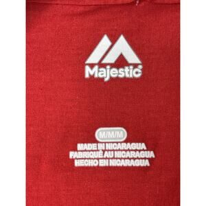 Item: Womens short-sleeve V-neck shirt/top with front "RED SOX Boston" text and Boston "B" logo graphic, plus small Majestic logo at left chest; solid red back.