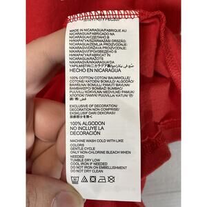 Care: Machine wash cold with like colors, gentle cycle, non-chlorine bleach when needed, tumble dry low, cool iron if needed, do not iron on embellishment, do not dry clean.