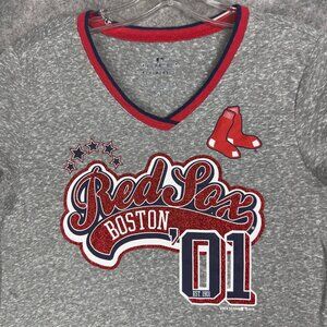 Boston Red Sox Womens 18 Heather Gray V-Neck Bling Graphic Tee By 5th & Ocean