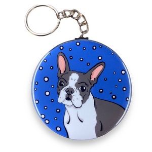 Boston Terrier Dog Snow Keychain, Handmade Holiday Dog Stocking Stuffer Gift