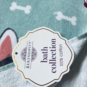 Serendipity bath collection blue Boston Terrier or French Bulldog dog face printed bathroom towels set. Includes 1 large bath towel and 1 smaller coordinating hand towel. May have multiple sets available, please ask if interested in bundling. Very soft and plush. 100% cotton.