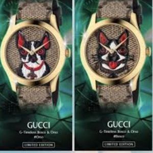 This new collection comes with a 38mm sized case with GG supreme canvas strap.polished yellow gold PVD case and an engraving of the names “Bosco & Orso” on the inside.The straps are specially designed to fit different wrist sizes, from 150mm to 192mm & come finished with an ardillon buckle in the same