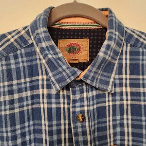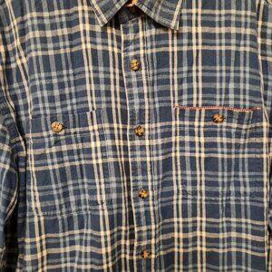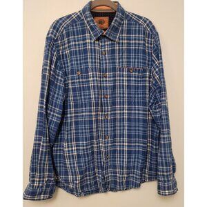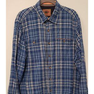 Boston Traders Flannel Shirt Blue White Plaid Flip Cuffs Long Sleeve Mens XL