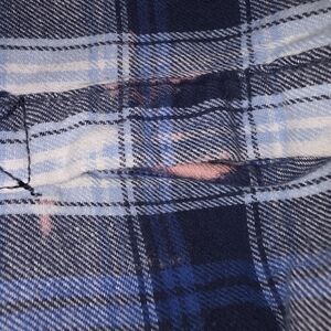 The Boston Traders Flannel Shirt Jacket Shacket in Men's Size XL is a versatile and stylish addition to any wardrobe. Please notice a couple light spots from a cleanser or bleach in pictures. This button-up shirt features a cozy fleece lining, making it perfect for casual or workwear occasions in the winter, fall, or spring seasons. The blue plaid pattern with quilted accents adds a touch of hipster, biker, or grunge style, while the relaxed fit and hooded design provide comfort and practicality. Made from a blend of polyester and cotton flannel, this shirt is machine washable for easy care.