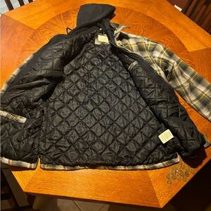 Nice jacket only worn a couple of times. Size large but on the smaller side.