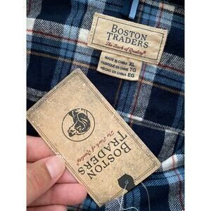 Boston Traders Men's Blue White Plaid Button Down Shirt Top
