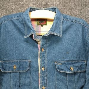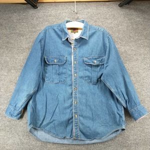 Boston Traders Mens Denim Shirt Blue Large Button Front Long Sleeve